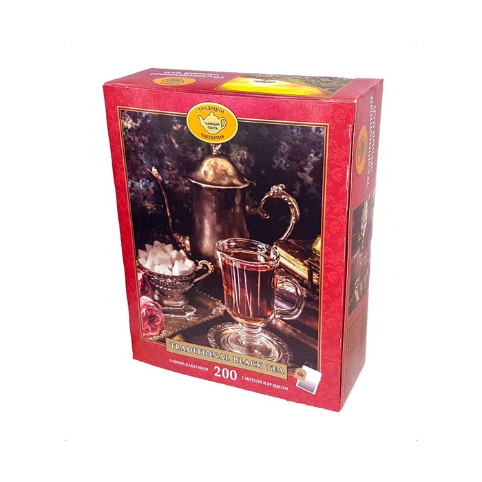 Чай Фабрика Чая Чайный Гость Традиционный чёрный — это высококачественный черный чай в пакетиках, упакованный в количестве 200 штук по 1,5 г каждый. Этот продукт соответствует стандартам ГОСТ и идеально подходит для ежедневного употребления.Подробнее