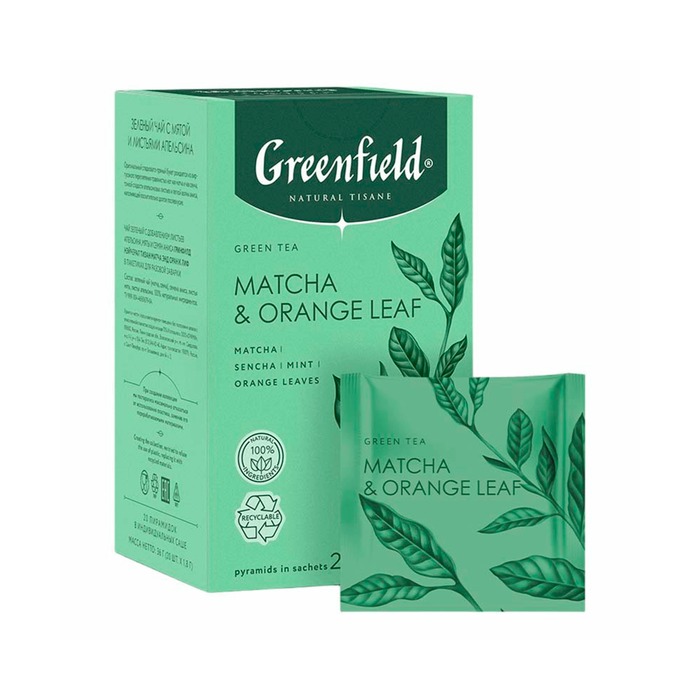 Чай Гринфилд Нейчерал Тизан Матча энд Оранж лиф сенча анис мята зелёная, 20пирам*1,8г