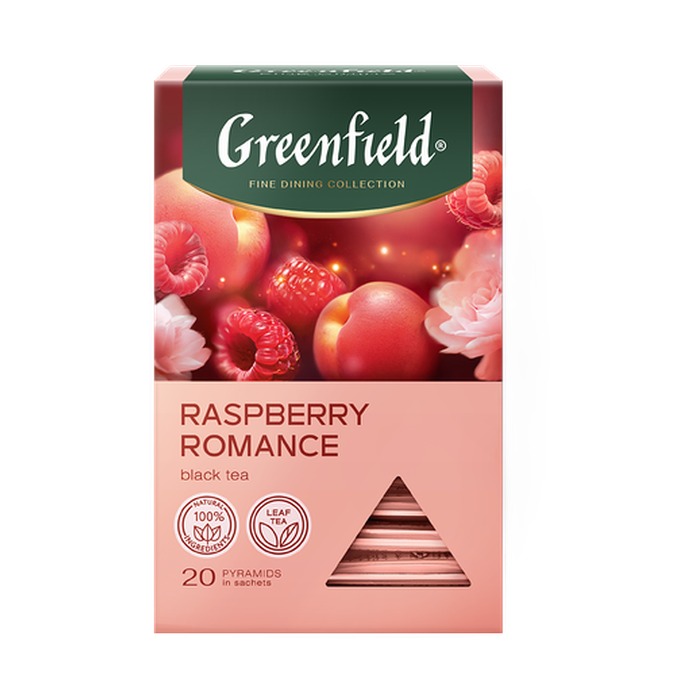 Чай Гринфилд Распберри Романс чёрный с добавками, 20пирам*1,8г