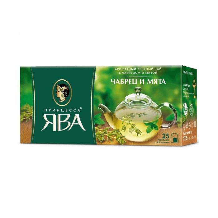 Чай Принцесса ЯВА Чабрец и Мята от бренда ОРИМИ — это ароматный зеленый чай с добавлением чабреца и мяты. Упаковка содержит 25 пакетиков по 1,5 г, что делает его удобным для разовой заварки.Подробнее