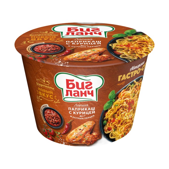 Лапша БП БигЛанч ведро Паприкаш с курицей и острым перцем — это быстрое и сытное блюдо от бренда КБГ. Упаковка весом 90 г содержит все необходимые ингредиенты для приготовления вкусного обеда или ужина.Подробнее
