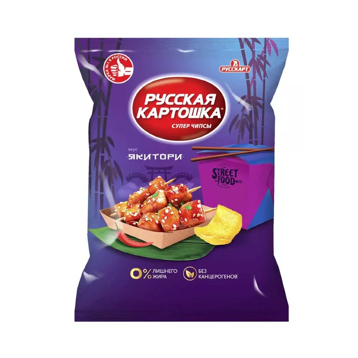 Чипсы Русская Картошка со вкусом Якитори от бренда Русскарт — это хрустящий картофельный снек весом 105 г. Они идеально подойдут для любителей оригинальных вкусов и экзотических сочетаний.Подробнее