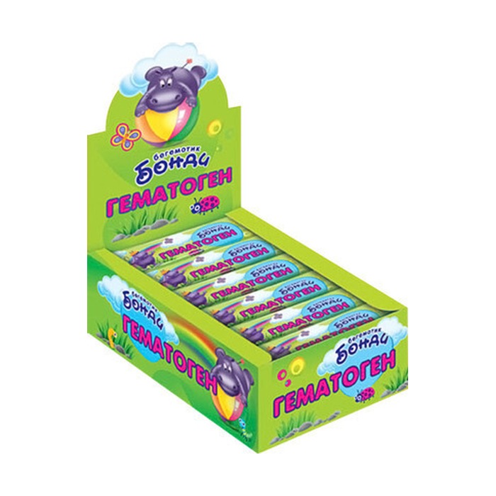 Гематоген "Бегемотик Бонди" обладает сладким вкусом и подходит для детей и взрослых, желающих поддержать уровень железа в организме. Его можно употреблять как перекус или десерт, что делает его идеальным дополнением к рациону. Продукт изготовлен по классической рецептуре, что гарантирует высокое качество и натуральность.