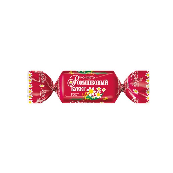 Конфеты «Ромашковый букет» от Славянки — глазированные сладости с молочной помадной начинкой весом 1 кг. Конфеты имеют характерный ванильно-ромовый вкус, оформлены в ярких красных и зеленых оттенках с покрытием из темной шоколадной глазури. Классическое угощение советского производства с традиционной рецептурой.Подробнее