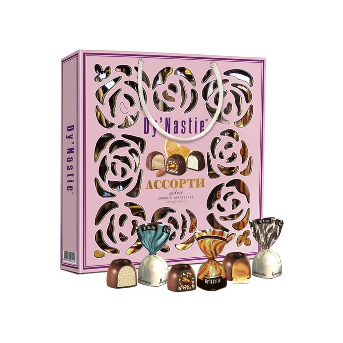 Шоколадные конфеты ассорти "Роза" от бренда Династия — это изысканное сочетание вкусов, представленное в упаковке весом 170 г. Эти конфеты изготовлены из темного шоколада и содержат разнообразные кремовые начинки, включая начинку типа пралине.Подробнее