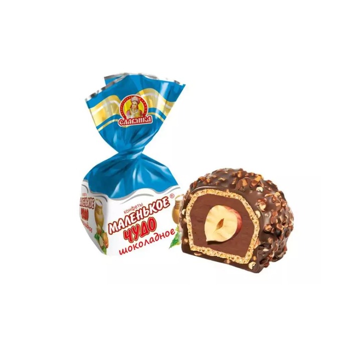 Конфеты Славянка «Маленькое чудо» — вафельные конфеты в белой глазури с кокосовой стружкой, весом 1000 г. Каждая конфета содержит цельный фундук и нежную кокосовую начинку. Продукт без ГМО, изготовлен из качественного сырья на производстве ООО «Кондитерское объединение «Славянка».Подробнее