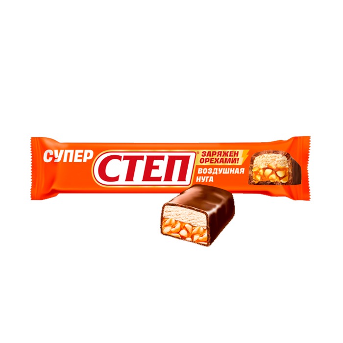 Батончик глазированный Славянка Super Step — двухслойное кондитерское изделие весом 65 г с мягкой нугой, карамелью и арахисом, покрытое молочной глазурью. Классический советский рецепт в современном исполнении с хрустящим арахисом и воздушной нугой.Подробнее