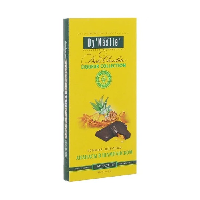 Шоколад Династия "Ананасы в шампанском" — это изысканное лакомство весом 100 г, которое сочетает в себе темный шоколад и ликерную начинку с цукатами ананасов. Этот продукт станет отличным выбором для ценителей сладостей с необычными вкусами.Подробнее