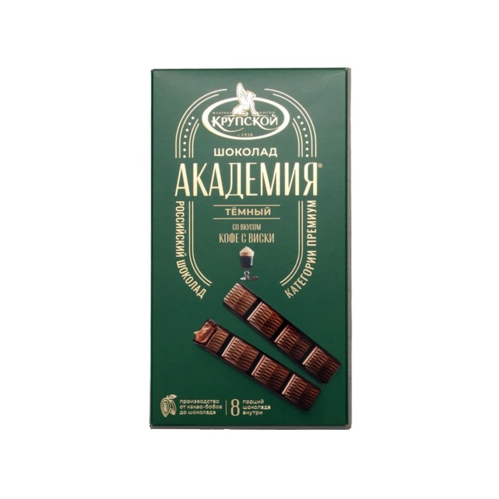 Темный шоколад Славянка «Академия» — порционный десерт весом 168 г с содержанием какао 40%. Сочетает нежный аромат кофе и благородный оттенок виски в одной плитке. Изысканная начинка дополняет насыщенный вкус темного шоколада, создавая гармоничный комплекс для взрослых любителей необычных вкусовых решений.Подробнее