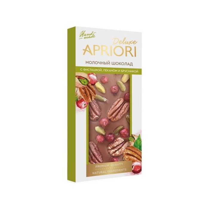 Шоколад Верность качеству Априори молочный с фисташками, пеканом и брусникой — это изысканный десерт весом 85 г, который сочетает в себе богатый вкус молочного шоколада и уникальные добавки. Этот шоколад ручной работы станет отличным угощением для ценителей сладостей.Подробнее