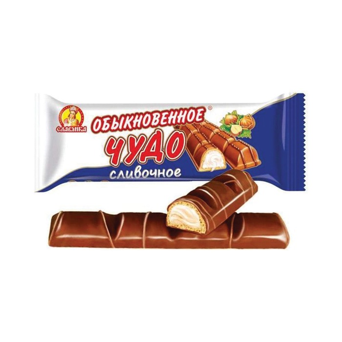 Вафельный батончик Славянка «Обыкновенное чудо» — классический шоколадный батончик весом 55 г с хрустящей вафельной основой, покрытой молочным шоколадом. Полая вафля щедро заполнена нежным шоколадным кремом с деликатными нотками орехов, что создаёт гармоничный вкусовой баланс между хрустящей структурой и мягкой начинкой.Подробнее