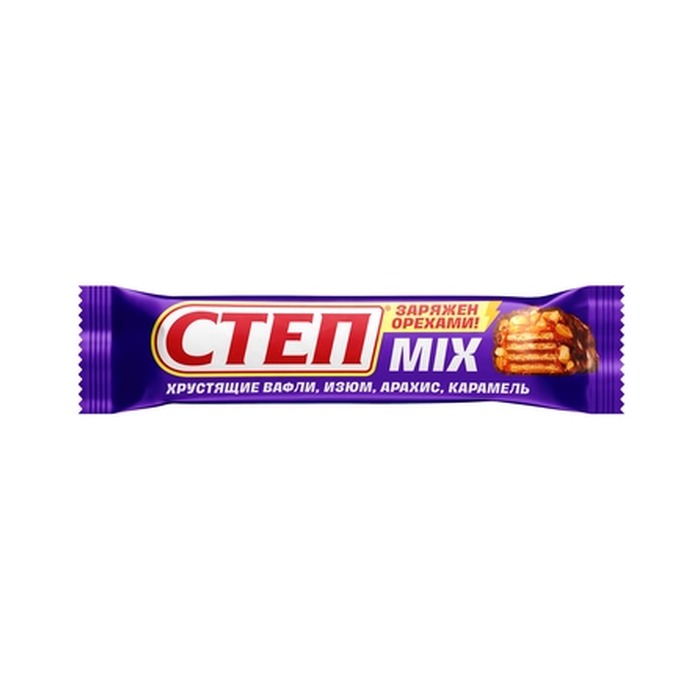 Вафельный батончик Славянка Степ микс — хрустящий снек весом 40 г с комбинацией арахиса, изюма и карамели, покрытый молочной глазурью. Классическая формула хорошего вкуса: хрустящая вафельная основа, сладкая карамель и обогащение натуральными ингредиентами.Подробнее