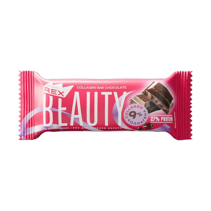 Батончик обладает насыщенным шоколадным вкусом и станет отличным перекусом в течение дня. Он подходит для активных людей, спортсменов и всех, кто стремится к здоровому образу жизни. Протеин Рекс Бьюти коллаген не только утоляет голод, но и способствует поддержанию упругости кожи.