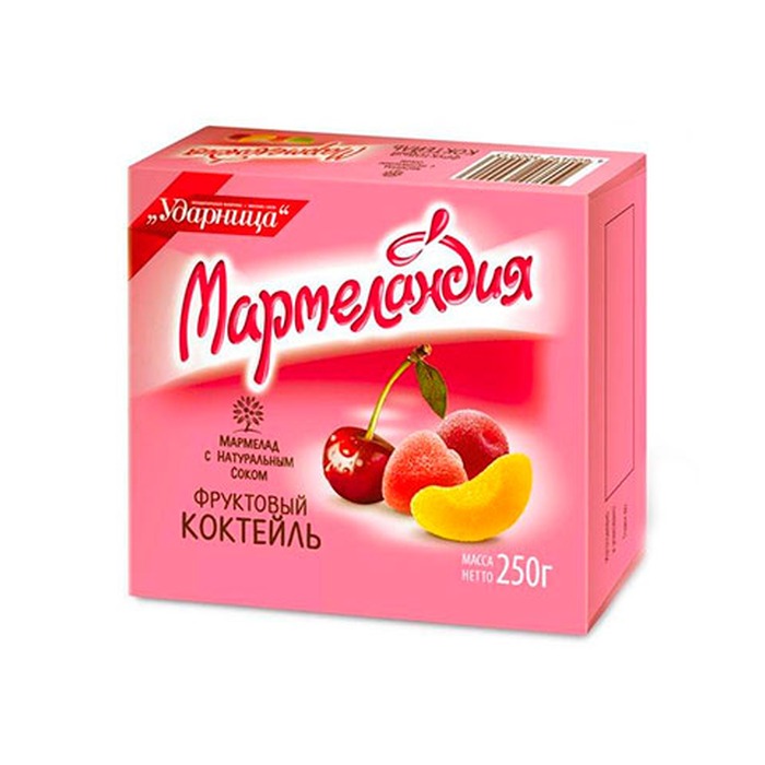 Мармелад Ударница Мармеландия Фруктовый Коктейль весом 250 г — это сладкое угощение, которое радует своим вкусом и оригинальной формой. Продукт выполнен в виде ягод и долек фруктов, что делает его привлекательным для детей и взрослых.Подробнее