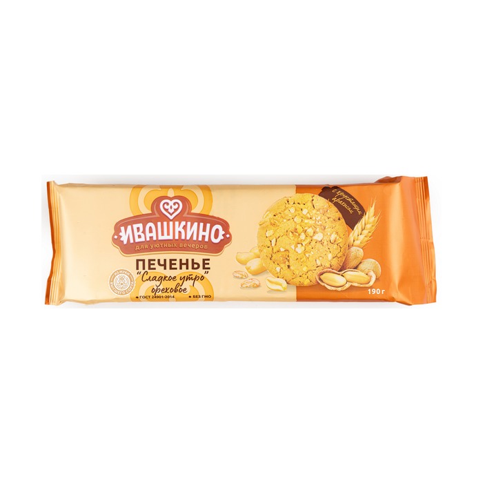 Печенье Ивашкино Сладкое утро ореховое весом 190 г представляет собой сдобное лакомство с добавлением овсяных хлопьев и дробленых орехов. Это идеальный вариант для тех, кто ценит вкусные и полезные сладости.Подробнее