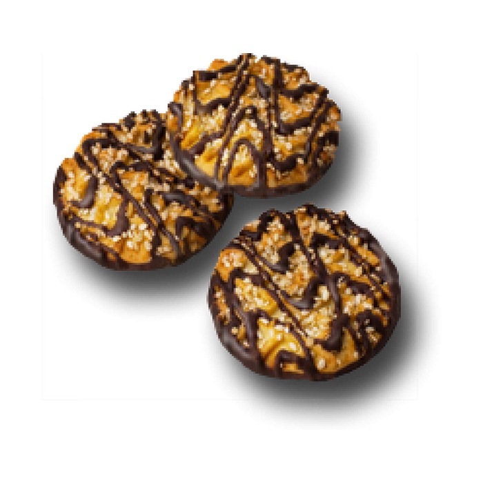 - Состав: мука пшеничная высшего сорта, глазурь кондитерская какаосодержащая (сахар, заменитель какао масла (пальмовое масло, масло ши, соевое масло), кунжут, разрыхлитель, соль).
