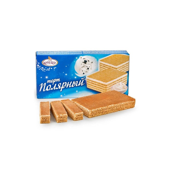 Торт Славянка «Полярный» — вафельный десерт весом 213 г с воздушной клубнично-сливочной начинкой. Неглазированный торт производства КФ им. Крупской отличается нежной структурой, которая легко режется на ровные кусочки и тает во рту. Идеален для розничной и оптовой торговли благодаря удобному формату упаковки.Подробнее