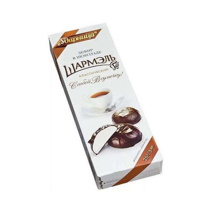 Зефир Ударница в шоколаде Классический Шармэль — это изысканный десерт от известной кондитерской фабрики "Ударница". Упаковка содержит 75 граммов этого нежного лакомства, которое порадует любителей сладостей.Подробнее