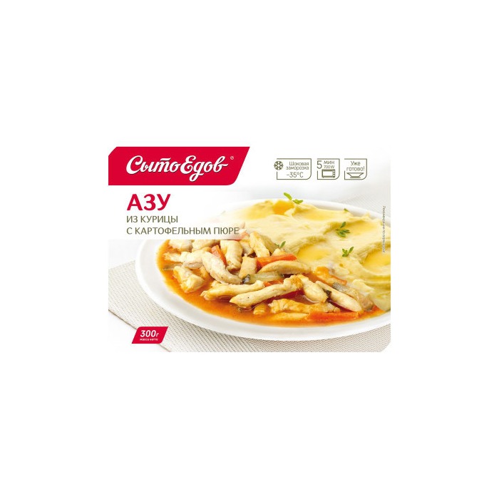 Азу Сытоедов из курицы с картофельным пюре — это сытное и вкусное блюдо, которое станет отличным вариантом для быстрого обеда или ужина. Упаковка весом 300 г идеально подходит для одного человека.Подробнее