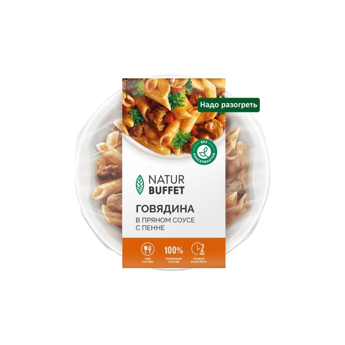 Говядина Натур Буфет в пряном соусе с пенне, 250 г