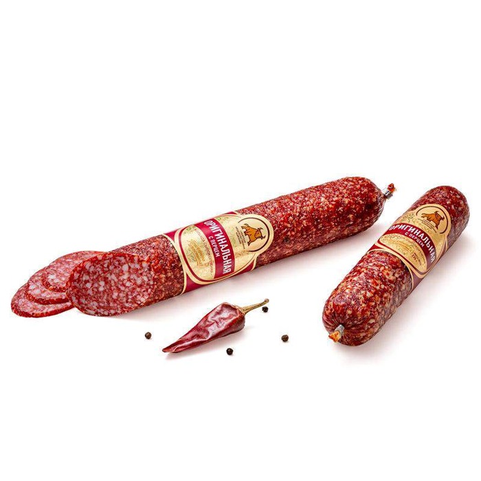 Колбаса Оригинальная с перцем изготовлена из отборного мяса и приправлена специями, что придаёт ей уникальный вкус. Этот продукт станет отличным дополнением к вашим блюдам и закускам. Благодаря технологии сырокопчения, колбаса сохраняет все полезные свойства и ароматы.