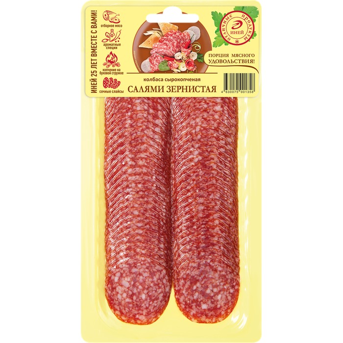 Салями Зернистая обладает характерным вкусом, который достигается благодаря традиционным методам копчения и использованию качественного мяса. Этот продукт станет отличным дополнением к вашему столу, а также подойдет для бутербродов и закусок. Продукт упакован в удобную упаковку, что позволяет сохранить его свежесть и вкус.