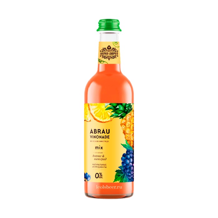 Винонад Абрау со вкусом ананаса и винограда — это безалкогольный газированный напиток от бренда Абрау-Дюрсо, представленный в стеклянной бутылке объемом 0,375 л. Напиток изготовлен на основе виноградного сока и сочетает в себе сладость медового ананаса и насыщенные нотки красного винограда.Подробнее