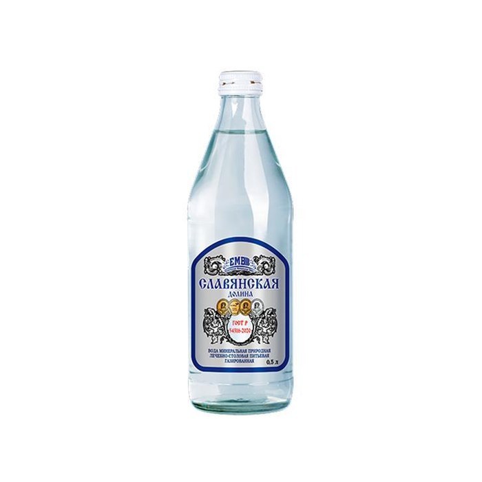 «Славянская долина» — минеральная лечебно-столовая вода с гармоничным гидрокарбонатно-сульфатным составом. Содержит кальций, магний и натрий, рекомендуется как столовая при регулярном употреблении и как лечебная — курсами по назначению врача. Воду разливает завод «Ессентуки Минеральные Воды» (ЕМВ) — один из крупнейших производителей минеральной воды Ставропольского края, работающий с глубокими скважинами Кавказских Минеральных Вод. Стеклянная бутылка 0,5 л сохраняет природный вкус.
