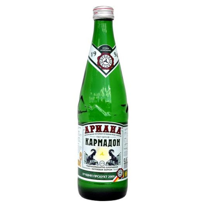 Кармадон — северо-осетинский бренд минеральной лечебно-столовой воды под ТМ «Ариана». Вода Ариана Кармадон минеральная газированная, 0.5 л — газированная минеральная вода в стеклянной бутылке объёмом 0.5 л.Подробнее