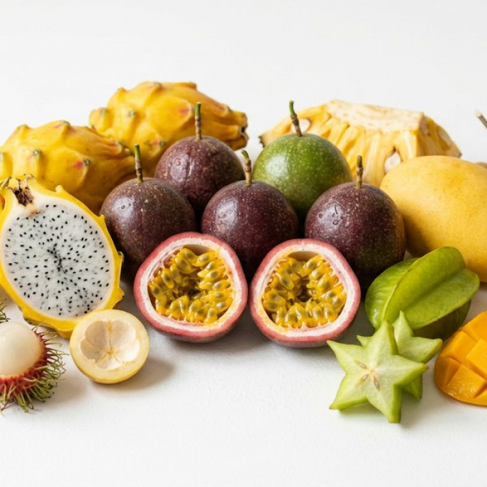 Маракуйя, или пассифлора, представляет собой экзотический фрукт с неповторимым вкусом и насыщенным ароматом, который способен преобразить любое блюдо или напиток. Эти овальные или круглые плоды имеют плотную кожуру, цвет которой может варьироваться от темно-фиолетового до ярко-желтого, часто с легкой морщинистостью, что является признаком спелости. Внутри находится желеобразная, сочная мякоть с многочисленными мелкими съедобными семечками. Вкус маракуйи — это уникальное сочетание сладости и освежающей кислинки, дополненное тропическими нотами, напоминающими ананас, цитрусовые и гуаву. Фрукт богат витамином C и антиоксидантами, что делает его не только вкусным, но и полезным дополнением к рациону.Подробнее