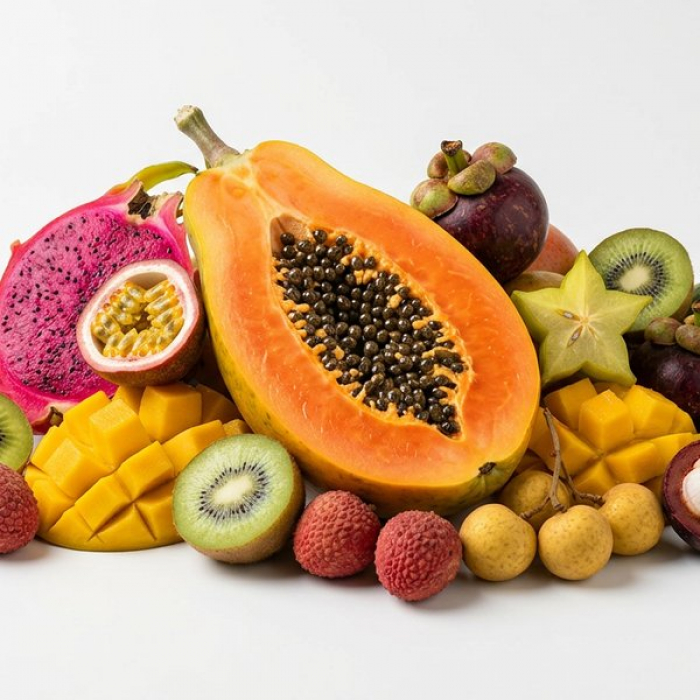 Папайя — это тропический фрукт, ценящийся за свой уникальный вкус и аромат. Зрелая папайя имеет мягкую, сочную мякоть оранжевого или желтого цвета, которая тает во рту, напоминая смесь дыни, персика и абрикоса с легкими мускусными нотками. Внутри плода расположены многочисленные черные семена, которые обычно удаляются перед употреблением. Этот экзотический фрукт является источником витаминов и минералов, включая витамин С и А, а также содержит фермент папаин, известный своими пищеварительными свойствами.Подробнее