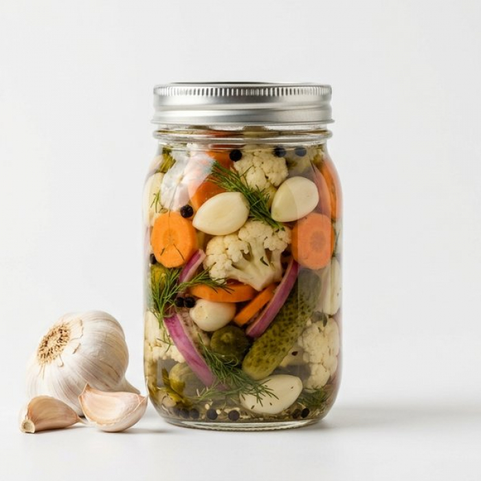 Соленый чеснок от Калининской базы представляет собой классический деликатес, приготовленный по традиционным рецептам. Он отличается умеренно острым, пикантным вкусом и хрустящей текстурой, что делает его превосходной закуской. Каждая головка чеснока тщательно отбирается и солится, сохраняя свой характерный аромат и упругость. Этот продукт станет ярким акцентом на любом столе, предлагая насыщенный, глубокий вкус, который оценят любители традиционных русских закусок. Его аромат мягче свежего чеснока, но при этом достаточно выразительный и аппетитный.Подробнее