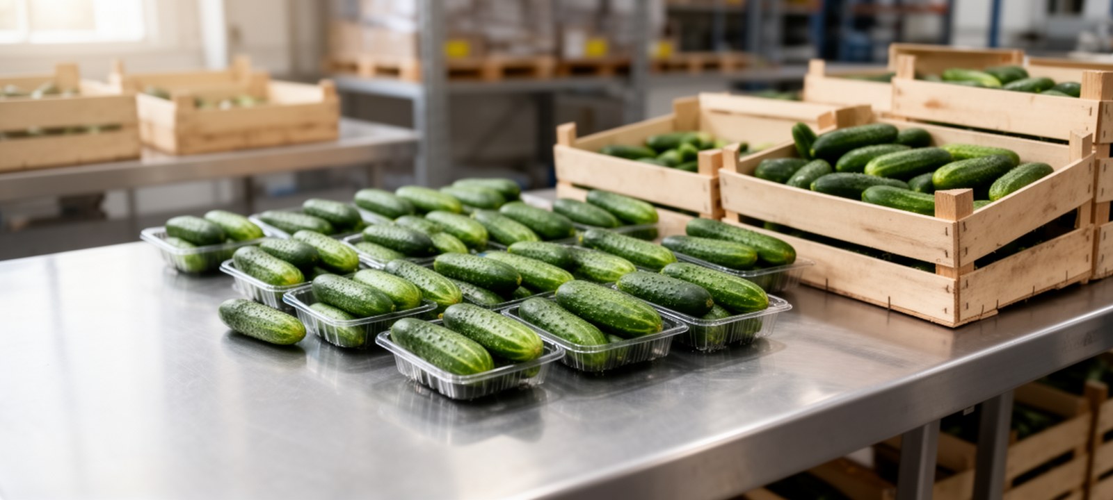 Мини-огурцы принимают как отдельный товарный тип: у них важны свежий тёмно-зелёный цвет, плотная мякоть, аккуратная мелкая форма, отсутствие плесени на цветке или плодоножке, мокрой механики и загнивания внутри шейкера.