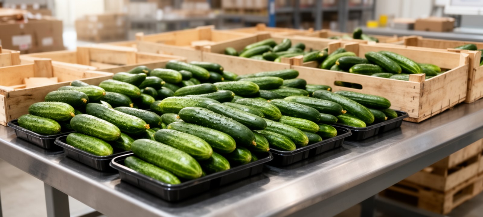Для огурцов рабочий режим хранения на РЦ обычно держат около +10...+14°C, для огурцов открытого грунта допускается +7...+10°C при достаточной вентиляции. Влажность нужна высокая, около 85-95%, но без конденсата. Огурцы чувствительны к этилену: рядом с бананами, томатами и другими этиленовыми товарами быстрее идёт пожелтение и потеря свежести.