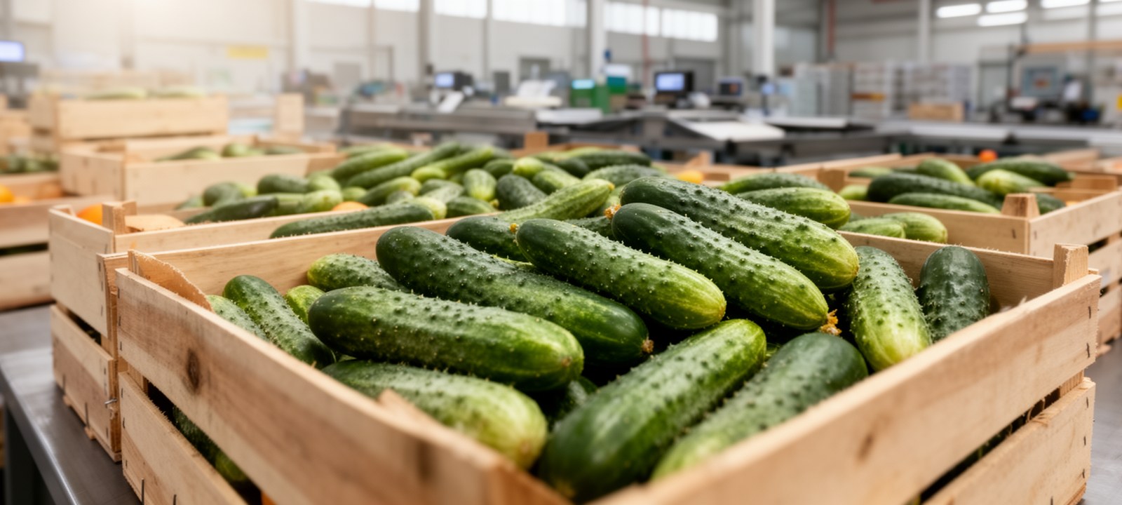 Среднеплодные колючие огурцы отличаются от гладких рельефной бугорчатой кожицей и оцениваются отдельно. По источнику ориентир калибра — длина 16-20 см и поперечный диаметр до 4,5 см; ключевые риски на приёмке — пожелтение, потеря тургора, мокрая механика, гниль, пустоты и грубые семена.
