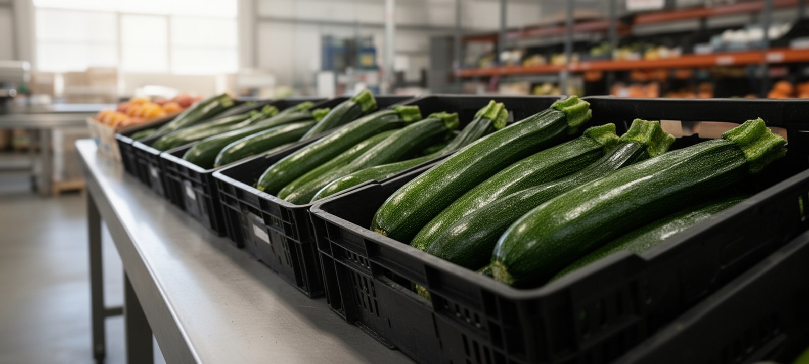 Для цукини по источнику рабочий холодный режим около +8...+10°C. Важно избегать переохлаждения, конденсата и давления в таре: тёмная кожица быстро показывает мокрые повреждения и пятнистость.