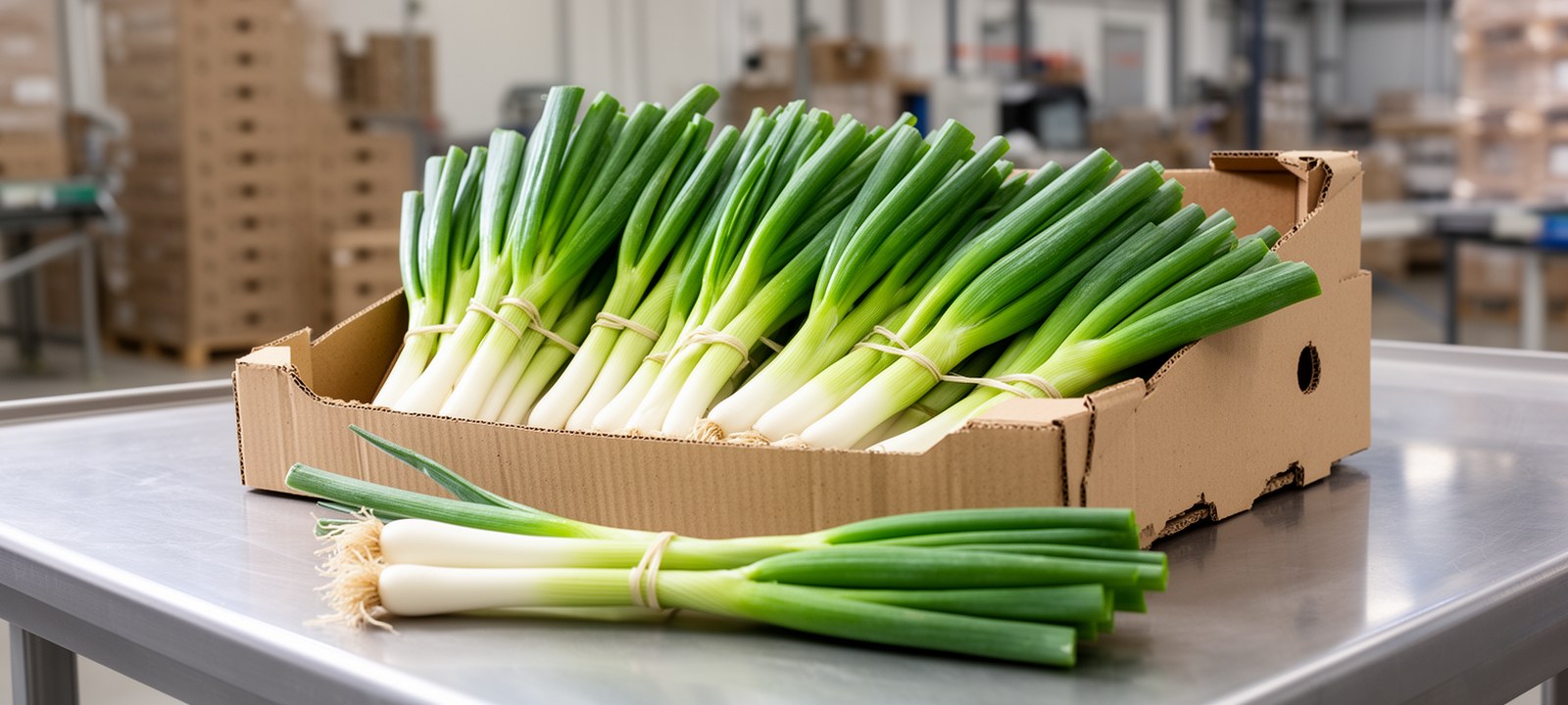 Зелёный лук быстро теряет товарный вид при тёплой полке, лишней влаге в пучке и долгой логистике: перо желтеет с кончиков, луковица вянет, появляются мокрые зоны, потемнения и гниль. На приёмке важно смотреть не только на общий зелёный цвет пучка, а на тургор пера, состояние белой луковицы, чистоту основания, длину пера и однородность партии.